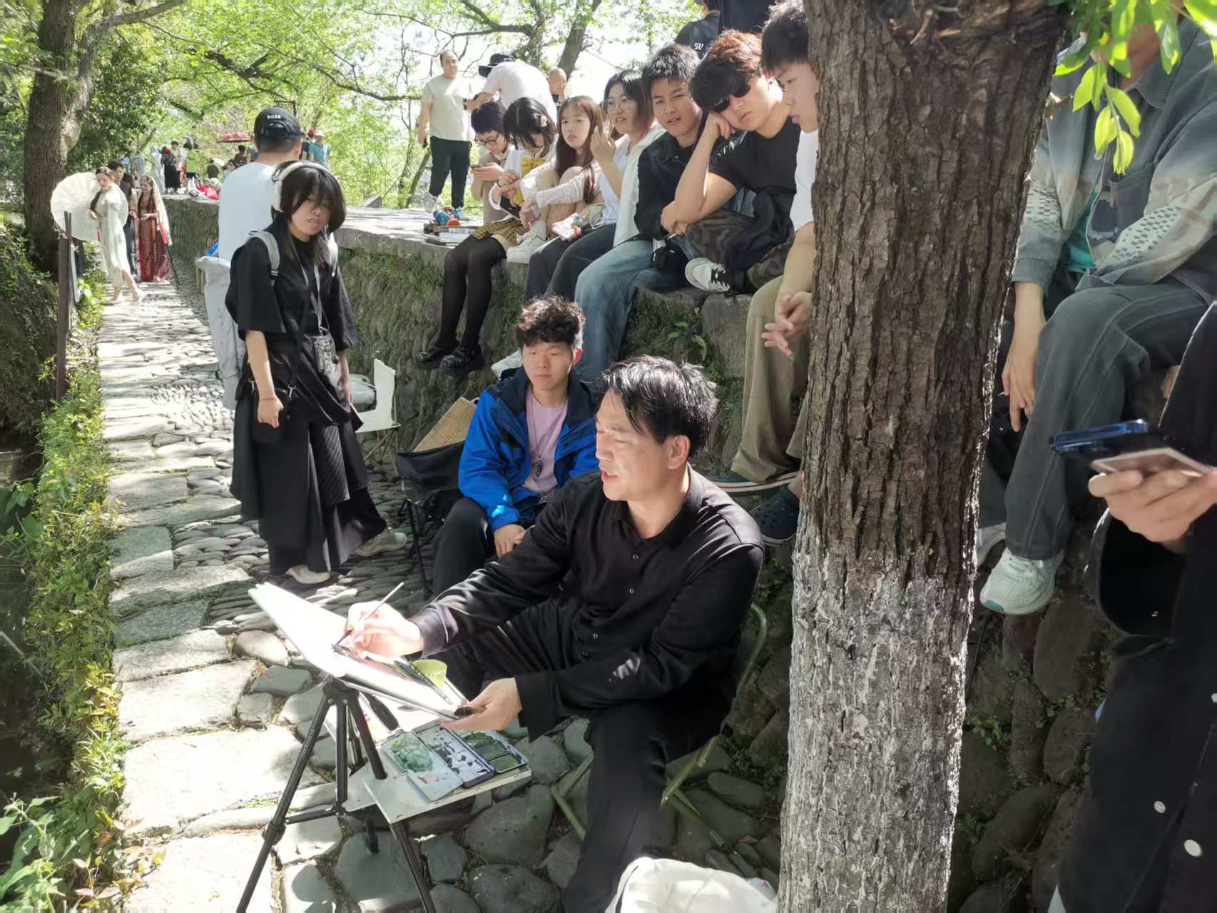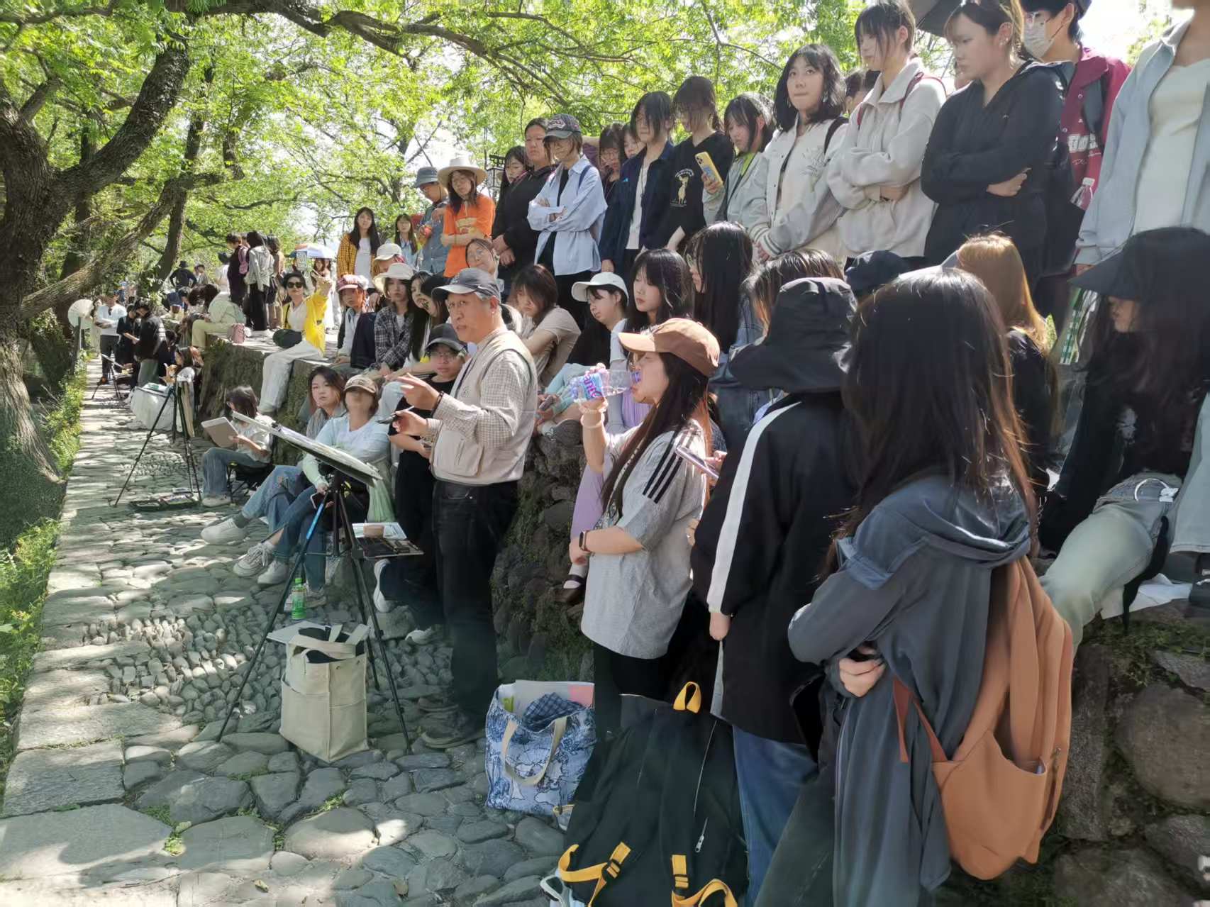 立足艺术类实践课程特点,着力培养高质量应用型人才,成人直播 于2025年4月14日至22日组织2024级视觉传达设计、环境设计、产品设计和美术学专业196名学生,前往安徽省黟县宏村实践教学基地开展风景写生实践教学。本次活动由成人直播 院长王刚教授带队,各系9名专业教师负责教学指导与行程管理。