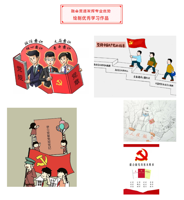 全体师生党员通过多种方式全方位学思践悟读党章,悟原理。党委书记带头成人直播 全体教工党员“学党章、守规矩、做表率”,强化政治自觉。成人直播 学生党员更是发挥专业特色,以笔绘心,抒发学生党员传承初心使命的责任感。