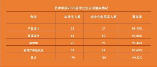 成人直播 2022 届共有毕业生 170 名,涵盖产品设计、环境设计、美术学、视觉传达设计四个本科专业,截止9月1日,毕业去向落实率为 94.12%,较去年提升 8 个百分点。圆满完成了2022届就业工作既定工作目标。