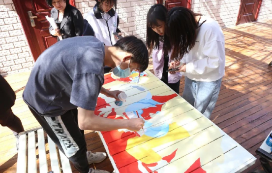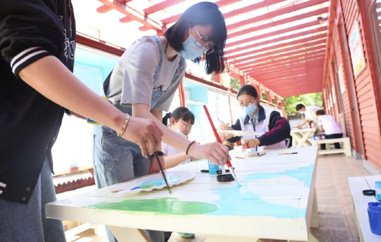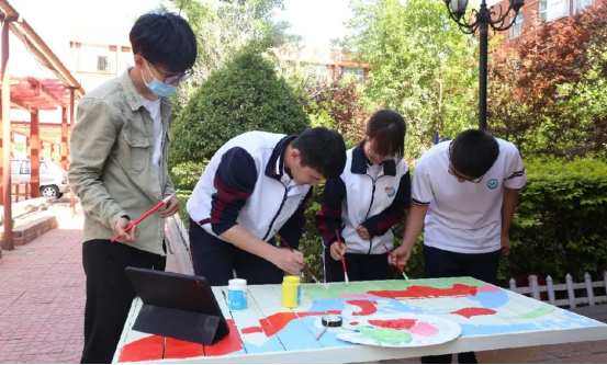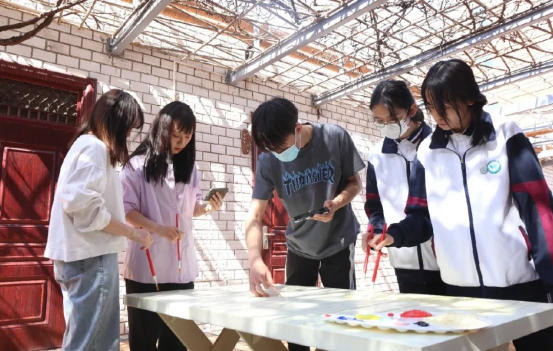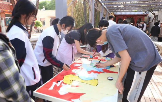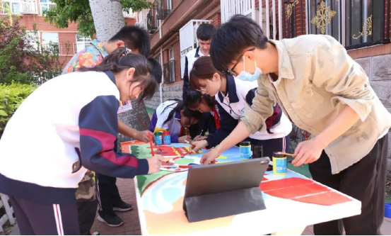 共建协议签约仪式后,财大成人直播 党员代表携手微山路中学学生、财大附小学生在微山路中学的致知创新坊、翰墨苑等地共同开展了文化艺术创作活动,并以党史学习为主题进行了手绘校园活动。