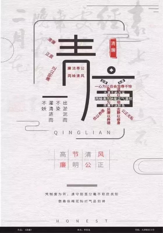 本次作品展共收到来自天津市各高校600余件作品,评选出优秀作品207件。设计作品全方位多角度地反映天津市在推进全面从严治党、党风廉政建设和反腐败工作方面的新举措,继承党的优良作风、弘扬廉洁文化新实践。
